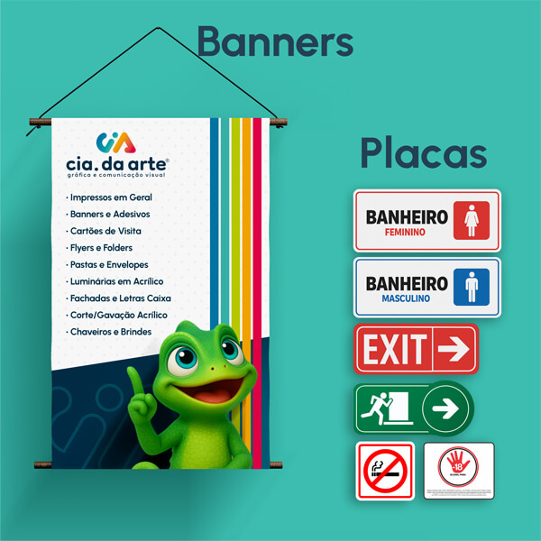 Transforme seu espaço em um verdadeiro canal de comunicação. Produzimos banners, adesivos, painéis e placas de sinalização que unem criatividade, resistência e qualidade, levando a identidade da sua empresa para vitrines, feiras, eventos e ambientes corporativos.